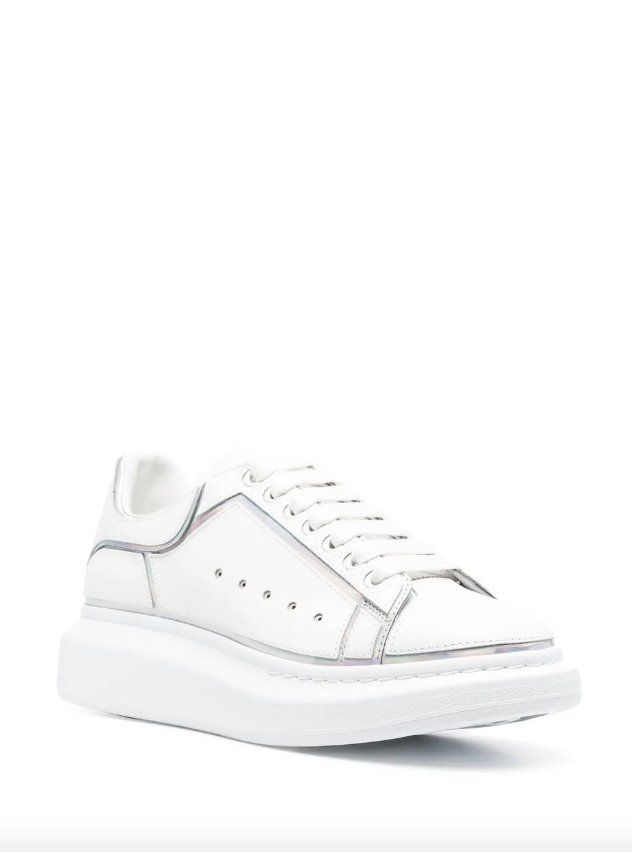 Alexander McQueen's oversized sneaker exemplifies contemporary luxury footwear design, merging bold proportions with refined craftsmanship. The exaggerated sole and structured silhouette create an unmistakable statement piece that commands attention. Constructed with...