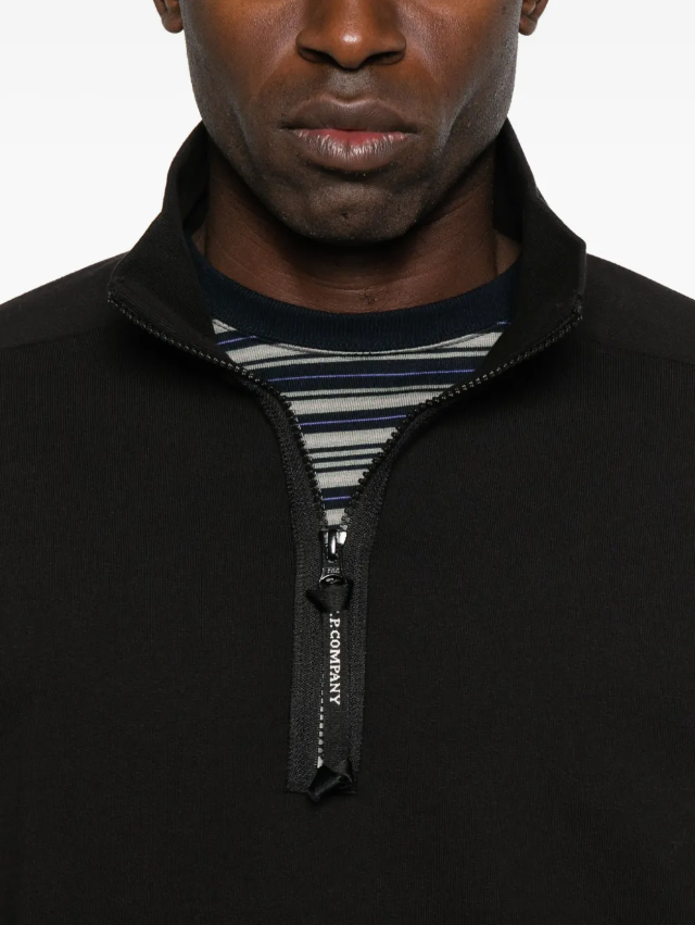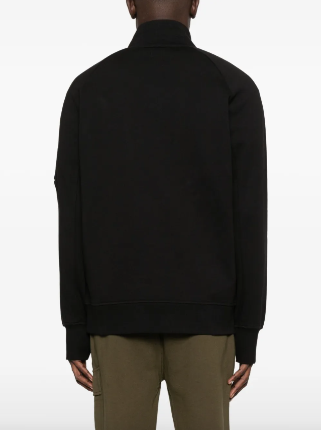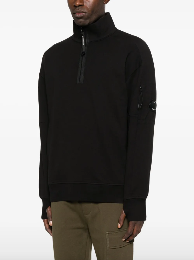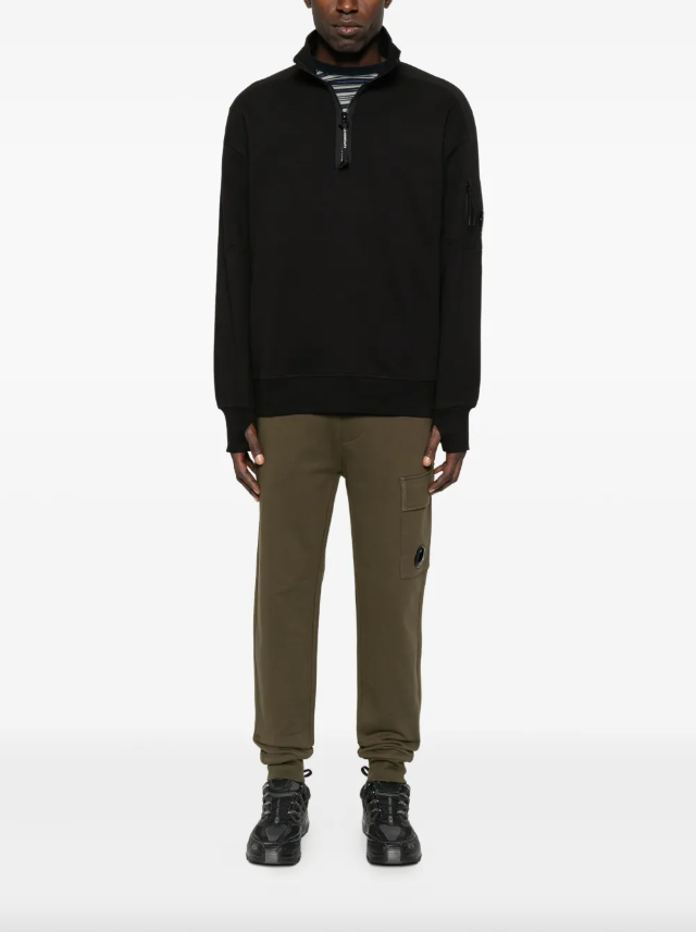 The C.P. Company Diagonal Fleece Half Zipped Sweatshirt combines innovative design with practical comfort. Made from medium-weight Diagonal Raised Fleece, this cotton fabric is brushed for softness and features a distinctive diagonal weave for durability. Its half-zip design allows adjustable ventilation, while ribbed cuffs and hem provide a secure fit. The iconic C.P. Company Lens adds a signature touch, and thumb holes in the cuffs enhance wearability during activity. Tailored in a regular fit, this sweatshirt offers both style and ease of movement for everyday wear.