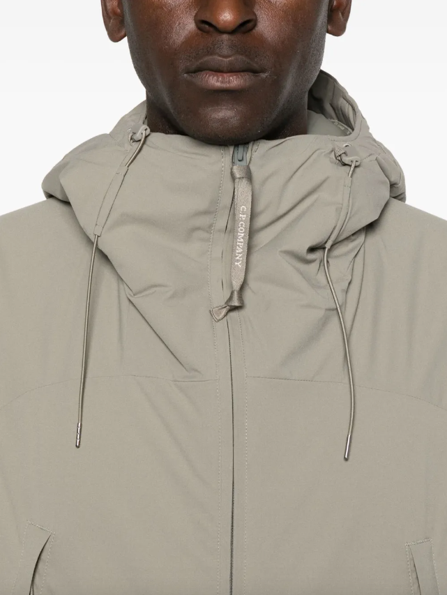 This hooded padded jacket by C.P. Company is crafted from Pro-Tek, a polyester mechanical stretch fabric offering the soft feel of a sweatshirt with reliable outer-layer protection. It features the brand’s signature Lens detail, a two-way full zip, and zippered side pockets for secure storage. Insulated with Primaloft® Silver wadding, the jacket provides excellent thermal retention and breathability. Treated with an anti-drop finish, this regular-fit jacket balances performance and comfort for versatile, expert-level wear.