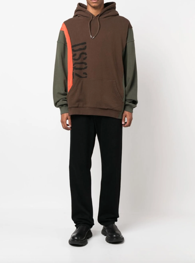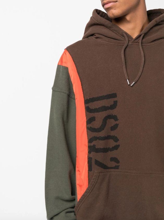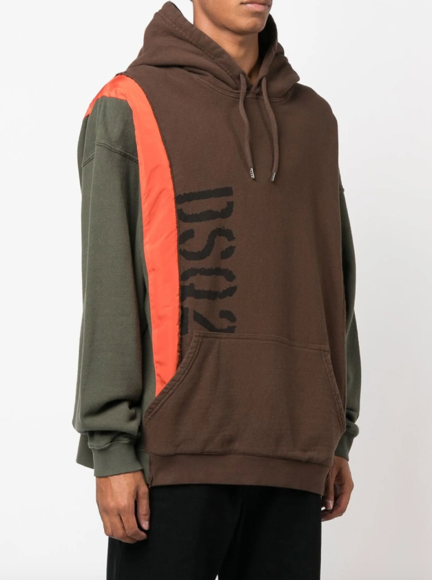This Dsquared2 colour-blocked hoodie features a bold, modern design with contrasting panels that enhance its visual appeal. Crafted for comfort and style, it prominently displays the brand's logo for a distinctive, high-end look. Perfect for adding a statement layer to casual and streetwear outfits, this hoodie combines contemporary fashion with practical warmth.