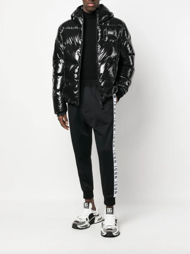 Dsquared2 Icon logo-print track pants blend contemporary style with comfort, featuring a bold logo print that showcases brand identity. Crafted from premium materials, these track pants offer a tailored fit and durable construction, ideal for both casual wear and athletic activities. Their design balances fashion-forward aesthetics with functional ease, making them a versatile addition to a modern wardrobe.
