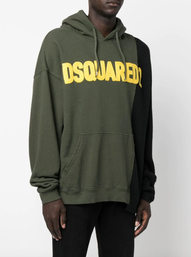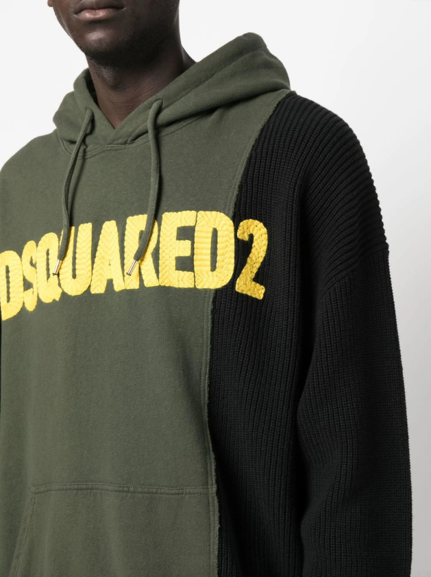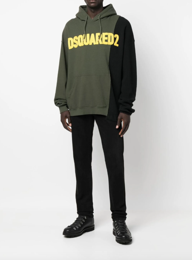 This Dsquared2 colour-blocked hoodie features a bold, modern design with contrasting panels that enhance its visual appeal. Crafted for comfort and style, it prominently displays the brand's logo for a distinctive, high-end look. Perfect for adding a statement layer to casual and streetwear outfits, this hoodie combines contemporary fashion with practical warmth.