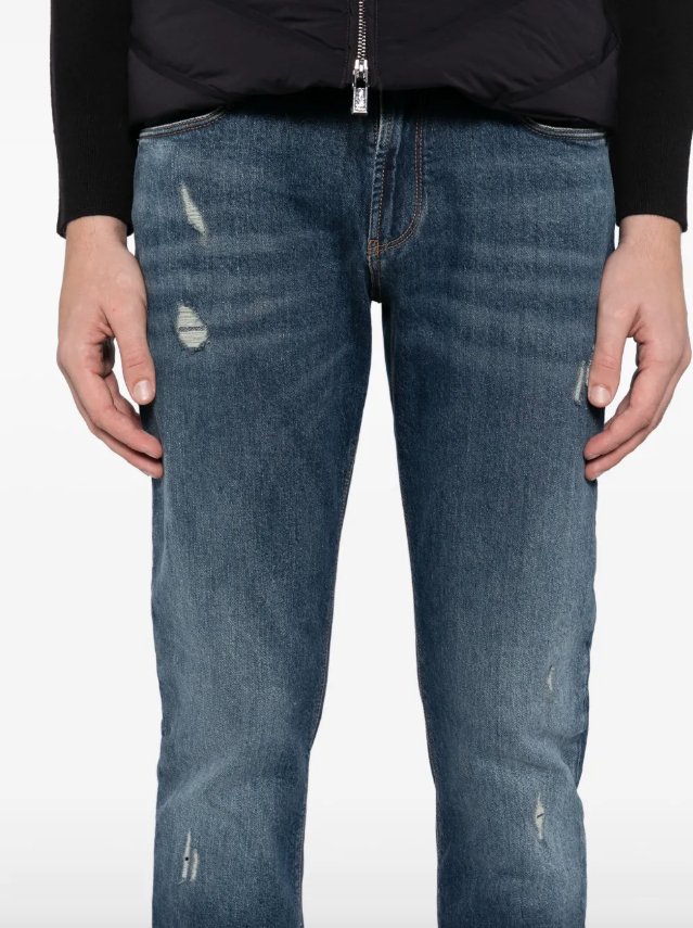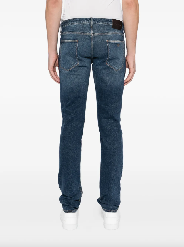 These Emporio Armani J06 slim-fit jeans feature a medium blue denim crafted to deliver a modern, tailored silhouette. Designed to sit comfortably on the hips, the slim-fit cut enhances a sleek and refined look while offering mobility. The medium blue wash provides versatile styling options, seamlessly fitting into both casual and smart-casual wardrobes with an elevated touch of quality and design sophistication.