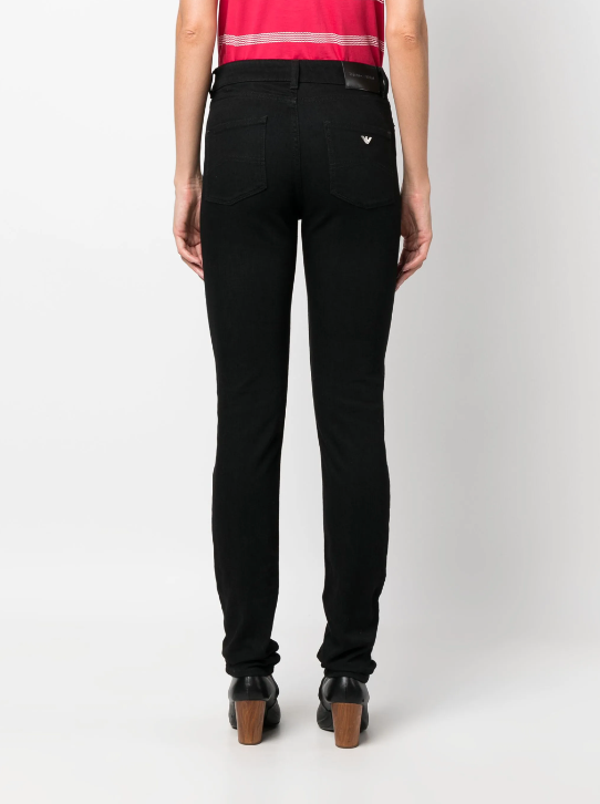 These Emporio Armani J18 jeans feature a high-waisted design and a skinny leg cut, offering a sleek and flattering silhouette. Crafted with premium denim, they provide both comfort and durability. Ideal for elevating everyday looks, these jeans combine contemporary style with timeless elegance, making them a versatile addition to any wardrobe.