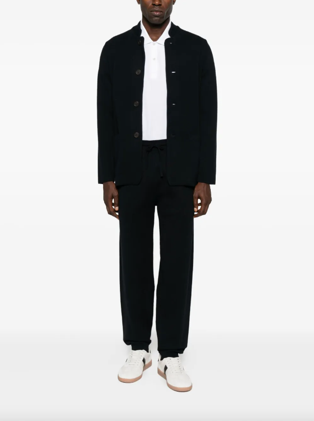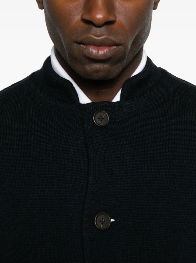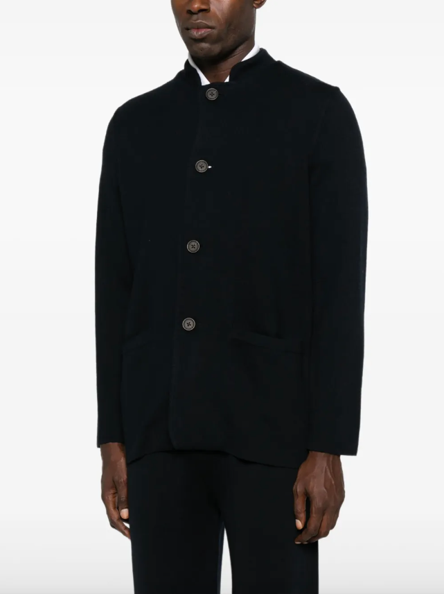 Crafted from premium wool, this Emporio Armani knitted cardigan offers refined warmth and timeless style. Its expert tailoring ensures a comfortable fit, making it an ideal layering piece for sophisticated wardrobes. Perfect for elevating both casual and formal looks with understated elegance.