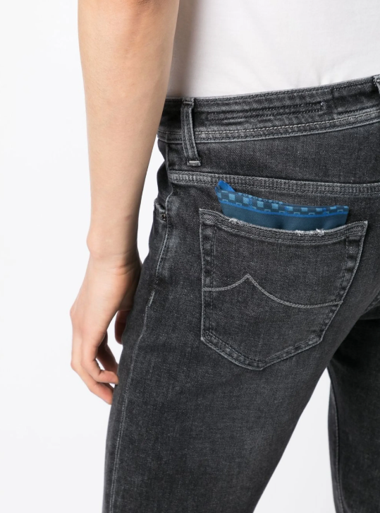Jacob Cohen's straight-leg jeans exemplify Italian craftsmanship with their signature embroidered logo detailing. Cut from premium denim, these jeans offer a timeless silhouette that transitions effortlessly from casual to smart-casual settings. The structured fit provides a flattering drape whilst maintaining durability through everyday wear. Known for meticulous construction and refined finishes, Jacob Cohen delivers a sophisticated alternative to mass-produced denim. An investment piece that rewards discerning denim enthusiasts seeking quality and understated elegance.