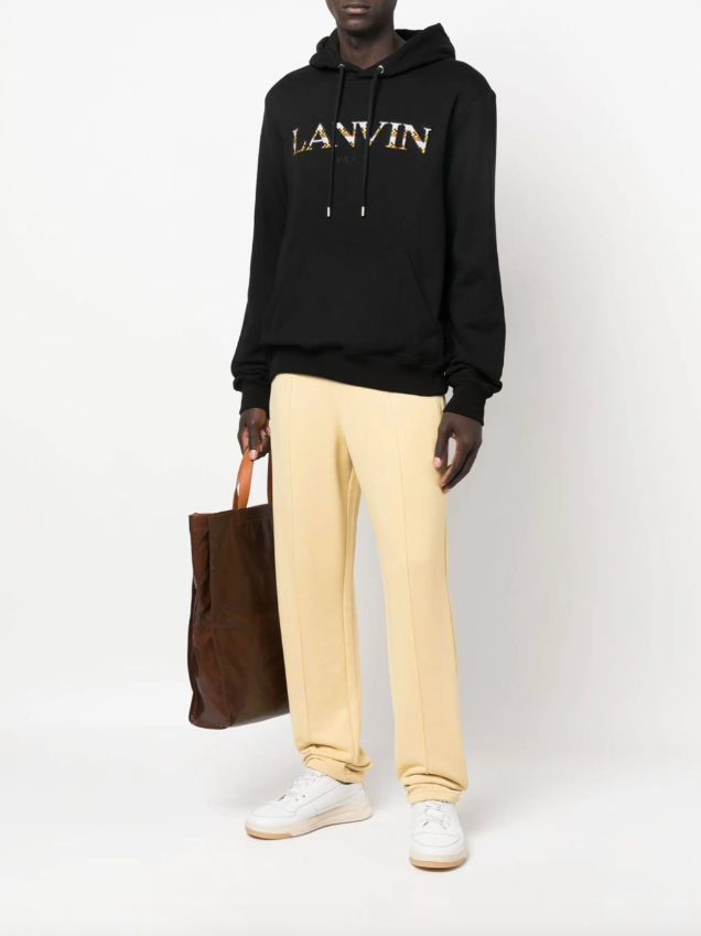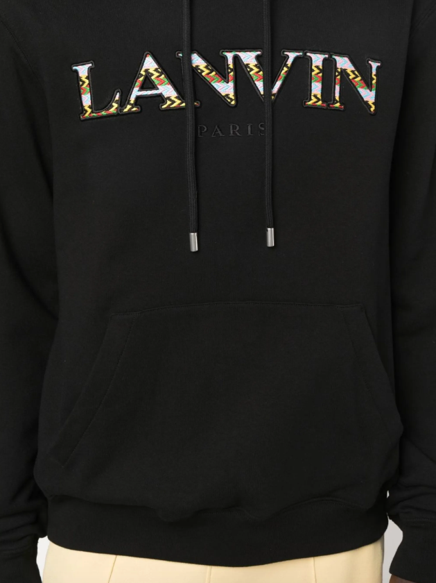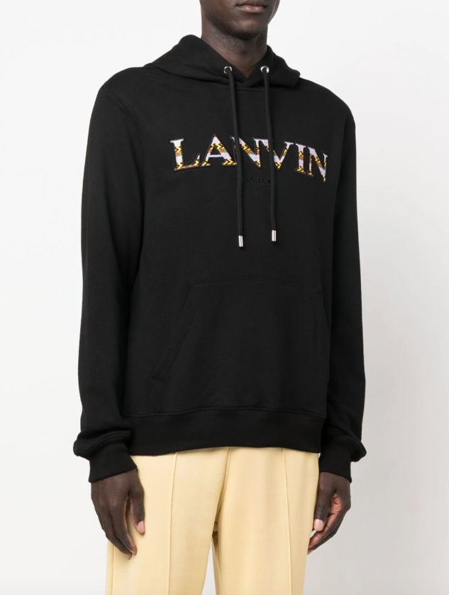 This Lanvin hoodie features a refined embroidered logo that adds a touch of luxury to its casual design. Crafted with a comfortable drawstring hood for adjustable coverage, it combines high-quality craftsmanship with everyday wearability. Ideal for elevating your relaxed wardrobe while maintaining a sleek, sophisticated look.