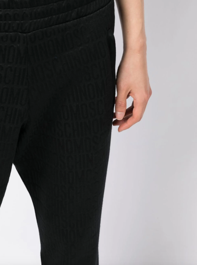 The Moschino logo-print trousers make a distinct statement with their bold branding and contemporary silhouette. Crafted from premium fabric, these trousers combine comfort with a fashionable edge, perfect for elevating everyday attire or adding flair to a polished look. Their precise tailoring ensures a flattering fit, making them a versatile choice for both casual and semi-formal occasions. Ideal for those seeking a blend of designer appeal and modern style.