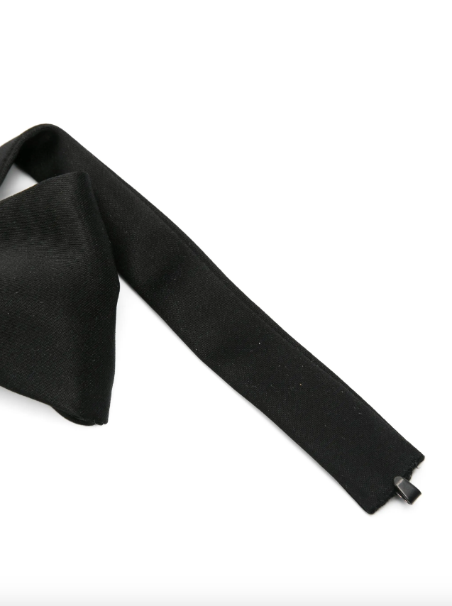 Made in Italy, the Paul Smith Black Pre-Tied Satin Bow Tie offers a polished look with its smooth satin finish and easy hook-and-eye fastening. Its pre-tied design ensures a flawless fit, making it the perfect accessory to complete any formal ensemble with understated elegance.