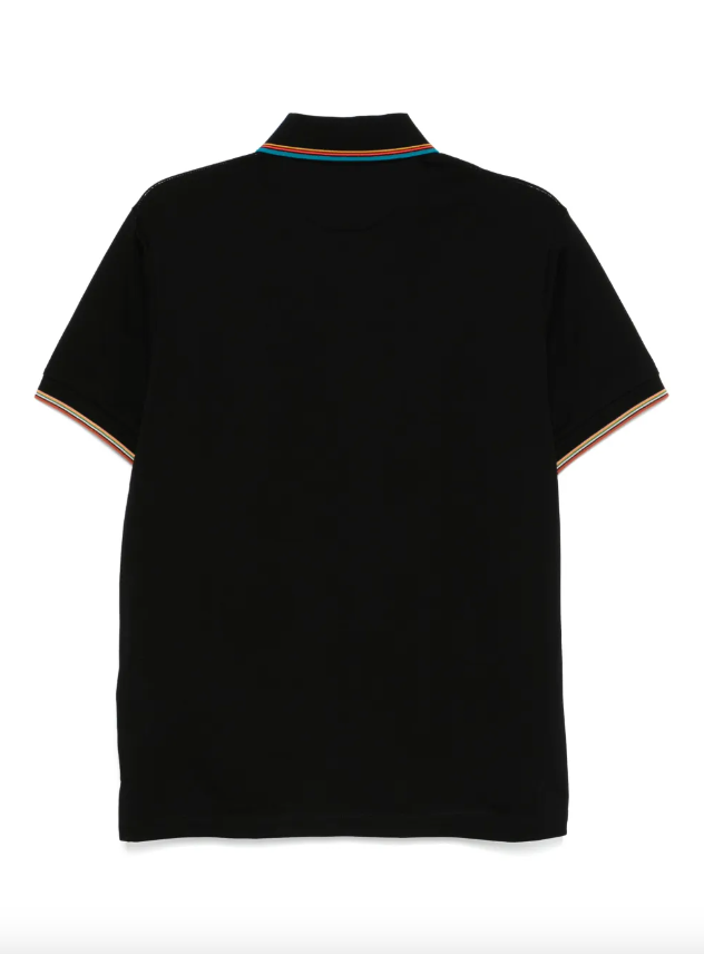 Master versatile styling with this Paul Smith black cotton zip polo, distinguished by the brand's signature stripe trim detail. The half-zip silhouette provides adaptable layering options for transitional dressing, while pure cotton fabric delivers superior comfort and breathability. Finished with Paul Smith's signature precision tailoring, this wardrobe staple pairs effortlessly with both casual and smart-casual ensembles. A sophisticated choice that combines practical functionality with the refined aesthetic that defines the brand's enduring appeal.