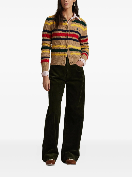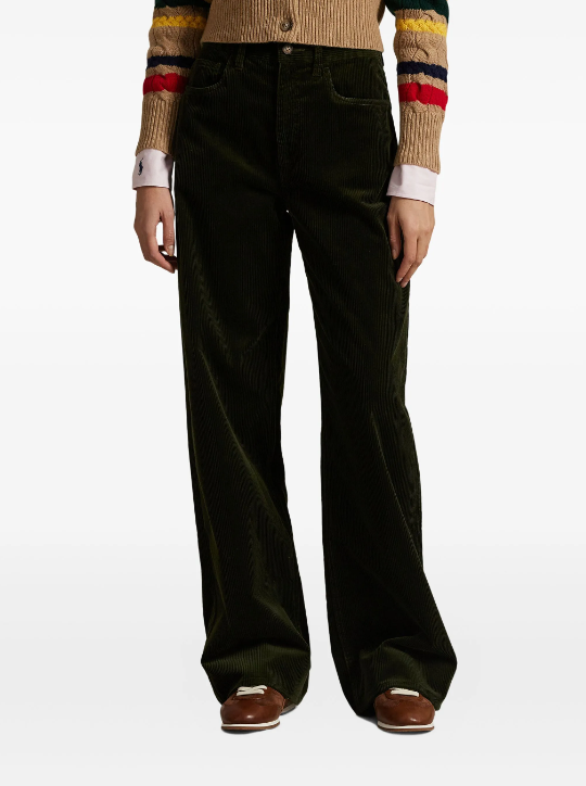 Crafted from premium wide-wale cotton corduroy, these Polo Ralph Lauren trousers embody timeless tailoring with a contemporary edge. The high-rise waist provides a flattering fit and elongated silhouette, while the wide-leg cut offers generous movement and comfort. A subtle flare at the hem adds refined sophistication to your wardrobe. Perfect for elevating casual looks or pairing with blazers for polished occasions, these trousers deliver the quality and versatility expected from this iconic brand.