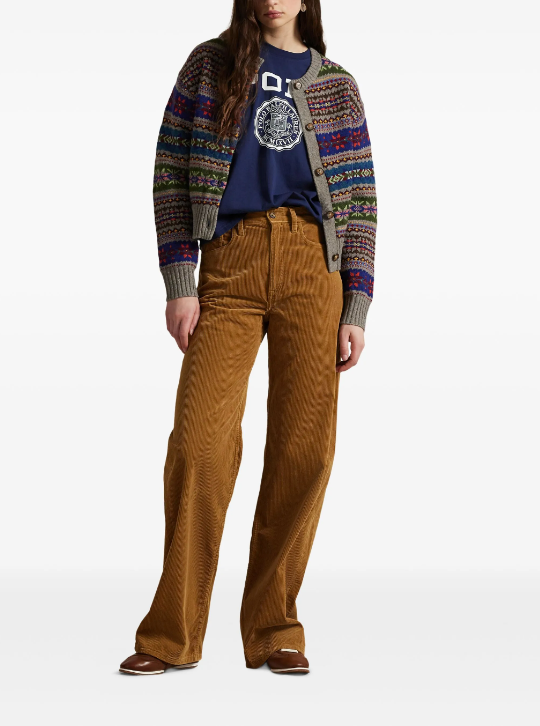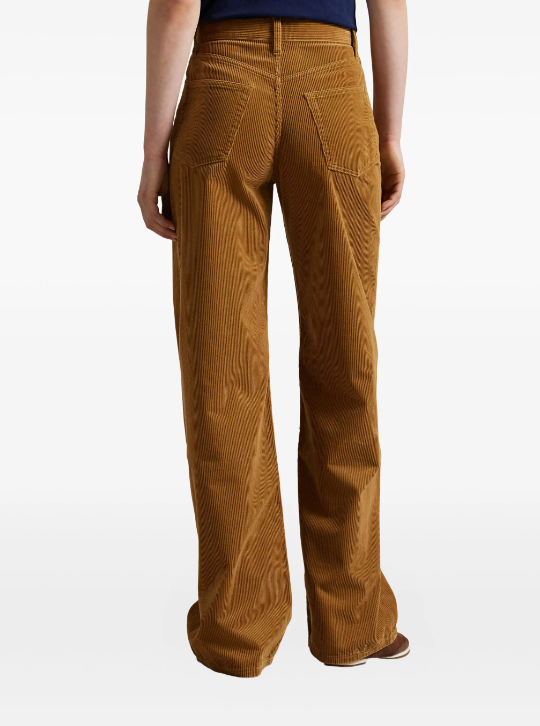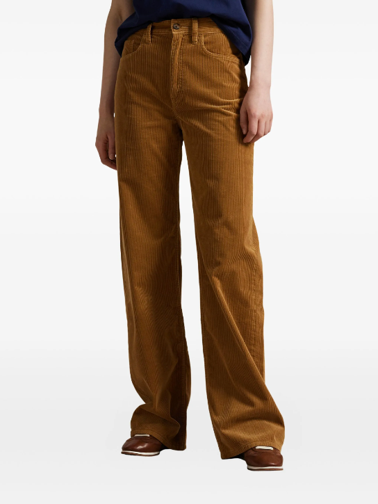 Crafted from premium wide-wale cotton corduroy, these Polo Ralph Lauren trousers embody timeless tailoring with a contemporary edge. The high-rise waist provides a flattering fit and elongated silhouette, while the wide-leg cut offers generous movement and comfort. A subtle flare at the hem adds refined sophistication to your wardrobe. Perfect for elevating casual looks or pairing with blazers for polished occasions, these trousers deliver the quality and versatility expected from this iconic brand.