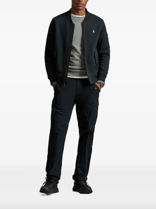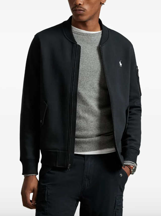 This Polo Ralph Lauren double-knit bomber jacket reimagines a timeless silhouette with contemporary athleticism. Constructed from a refined cotton-blend double-knit fabric, it delivers superior comfort and durability whilst maintaining a sleek, structured appearance. The signature embroidered Pony logo anchors the design with unmistakable heritage appeal. Ribbed cuffs and hem provide a refined finish, whilst the relaxed yet tailored fit suits both casual and smart-casual occasions. An essential layering piece that bridges the gap between sportswear and classic menswear.
