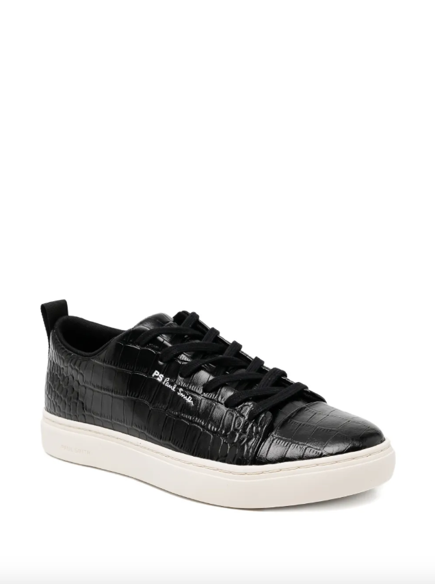 PS Paul Smith brown croc "Lee" trainers combine contemporary design with textured appeal. Crafted in rich brown crocodile-effect leather, these trainers deliver a distinctive aesthetic that elevates casual wardrobes. The "Lee" silhouette showcases Paul Smith's signature attention to detail, featuring clean lines and refined proportions. Versatile enough for everyday wear yet distinctive enough to make a statement, these trainers pair effortlessly with jeans, chinos, or relaxed tailoring. A sophisticated choice for those seeking understated luxury in their footwear collection.