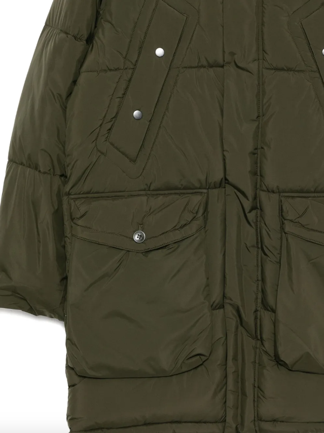 This PS Paul Smith green hooded parka combines functional design with refined style. Crafted for durability and comfort, it features a protective hood and a rich green tone that suits both urban and outdoor settings. Ideal for unpredictable weather, this parka offers reliable coverage while maintaining a sleek, contemporary silhouette characteristic of the Paul Smith brand.