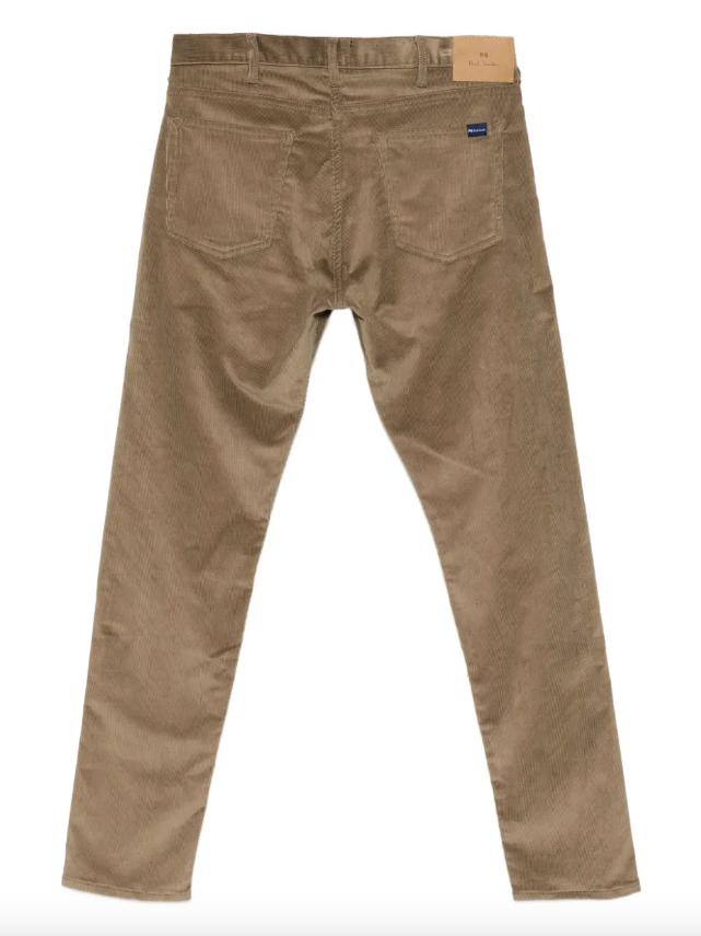 These PS Paul Smith tapered-fit beige corduroy trousers combine classic craftsmanship with contemporary style. Crafted from rich green corduroy fabric, they offer a refined texture and comfortable wear. The tapered fit ensures a modern silhouette that flatters the legs while maintaining ease of movement. Ideal for elevating casual and smart-casual outfits, these trousers bring a distinctive touch to your wardrobe with their timeless yet updated design.