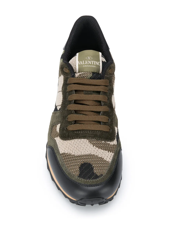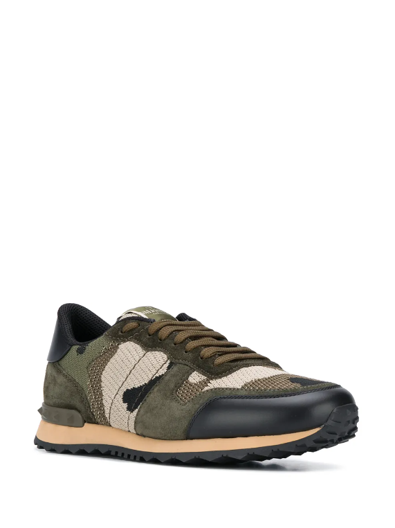 The Valentino Garavani Camouflage Rockrunner sneaker merges utilitarian aesthetics with luxury craftsmanship. The distinctive camouflage pattern introduces textural complexity whilst the signature rockstud detailing maintains the house's recognisable design vocabulary. Built on a contemporary runner silhouette, these trainers prioritise both visual intrigue and functional comfort through premium material selection and expert Italian construction. The juxtaposition of military-inspired patterning with refined embellishment creates a sophisticated edge, positioning the shoe as a versatile bridge between sportswear and high fashion. Ideal for those seeking distinctive footwear that commands attention without sacrificing wearability, these sneakers exemplify Valentino's innovative approach to modern luxury.